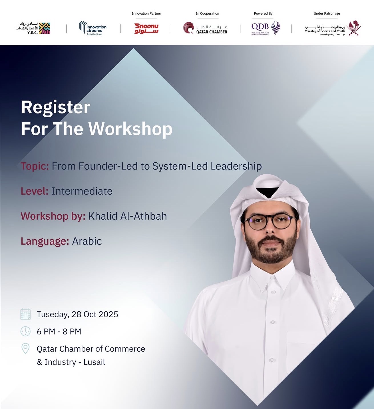 انضم إلى ورشة من قيادة المؤسِّس إلى القيادة بالنظام وتعرّف مع د. خالد العذبة على أساليب بناء نظام إداري يعمل بكفاءة واستدامة.